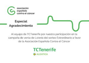 TCTenerife is doing its part by collaborating on the sale of lottery tickets to fight cancer. On this occasion, the collaboration is with the Spanish Association Against Cancer. This year, the draw will be held on April 11th. Among its many functions, the Association supports cancer research, focusing on projects and treatments for cancers with low survival rates. It also promotes preventative measures aimed at encouraging healthy lifestyles, and provides care and support to patients and their families throughout the entire process, offering psychological support, social services, and specialized advice.
